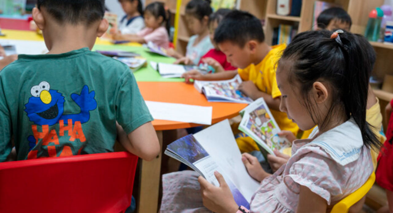 孩子們在老師的引導下,專心閱讀。記者 劉淑芳 攝