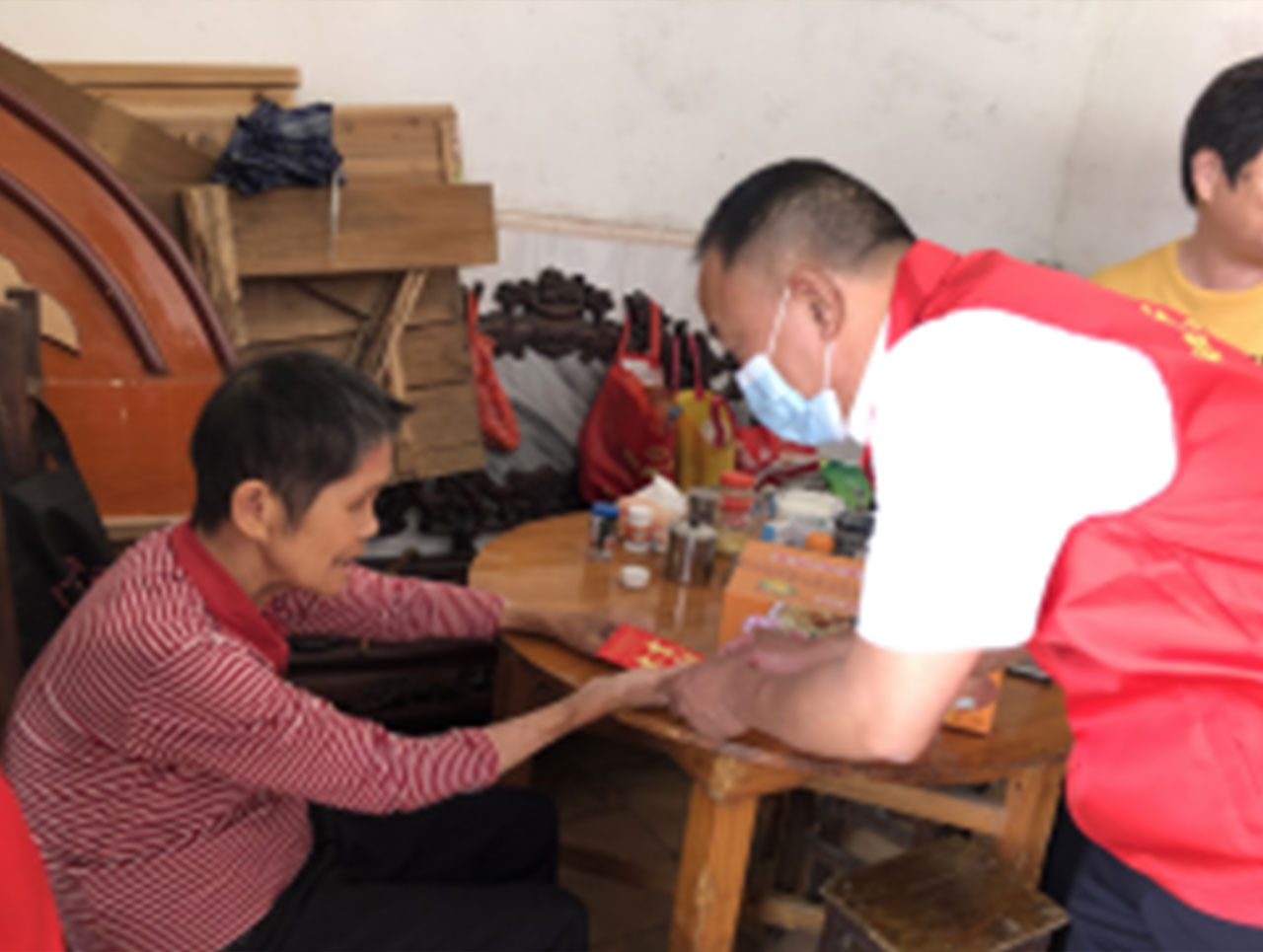 來到洪水受災(zāi)嚴(yán)重的困難村民家中,與他交流時(shí)得知,幾天前的那場(chǎng)洪水,已造成房屋坍塌,目前居住在村委安排的公屋暫住,這對(duì)于本來就不富裕的家庭來說,簡(jiǎn)直是雪上加霜,黨員們鼓勵(lì)他樂觀生活,早日走出災(zāi)難的霧霾。