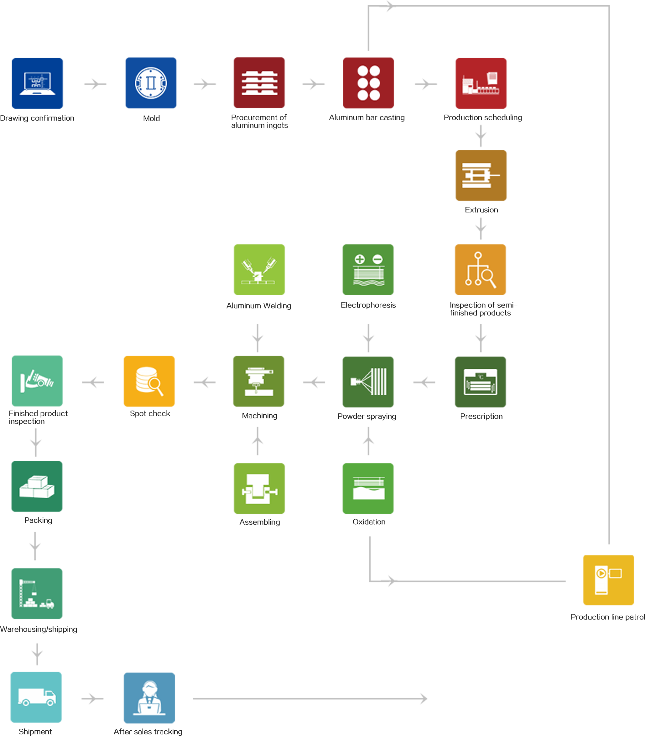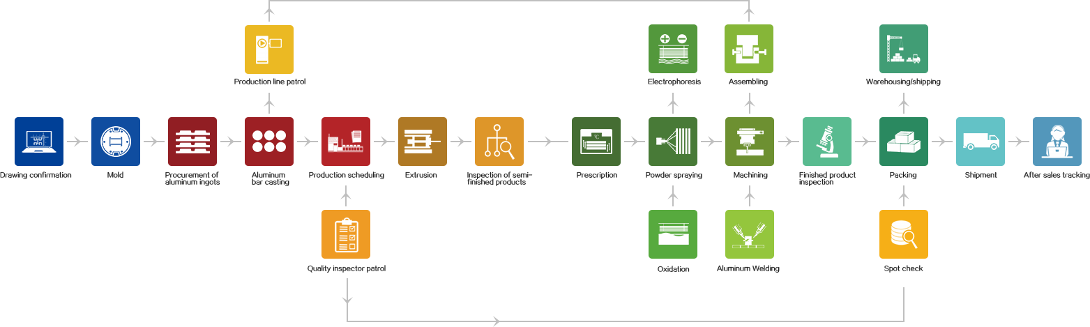 TIME Aluminum is an aluminum profile and aluminum product processing enterprise integrating aluminum alloy profiles, product design, drawing, mold manufacturing, production, processing, surface treatment, product testing and service. The production of products is completed in the factory. Compared with the counterparts, our equipment and process are more perfect, which can reduce unnecessary processes.